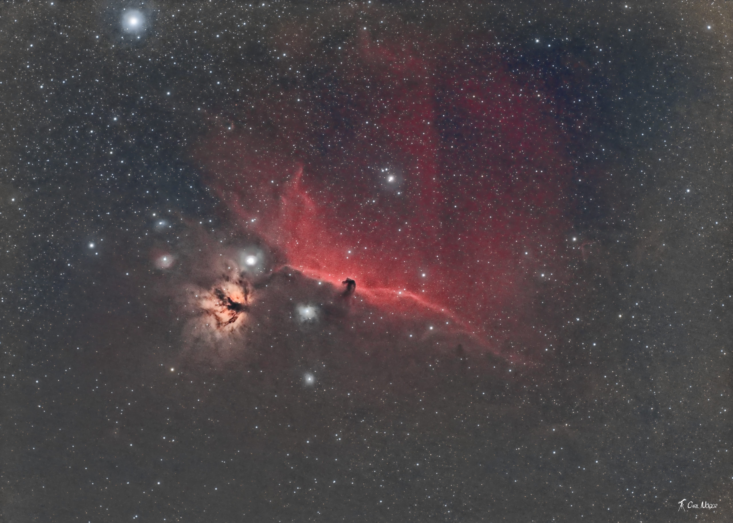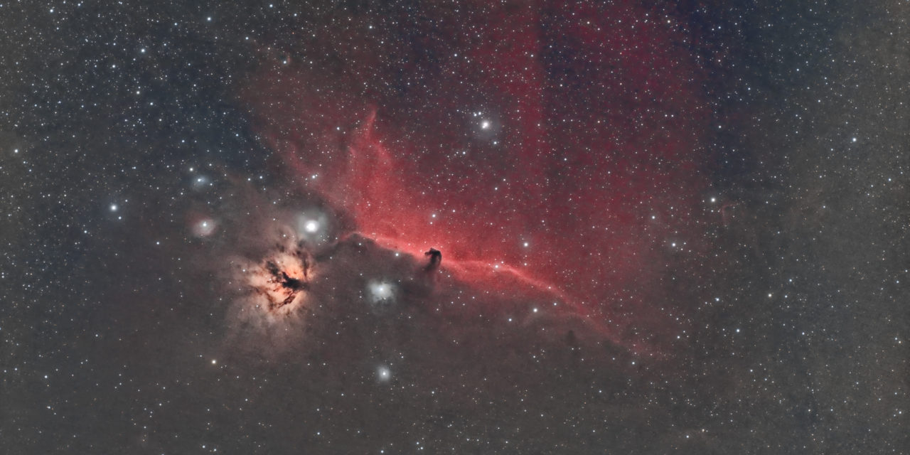 Nébuleuse de la Tête de Cheval (IC434) et Nébuleuse de la Flamme (NGC2024) dans la Constellation d’Orion…