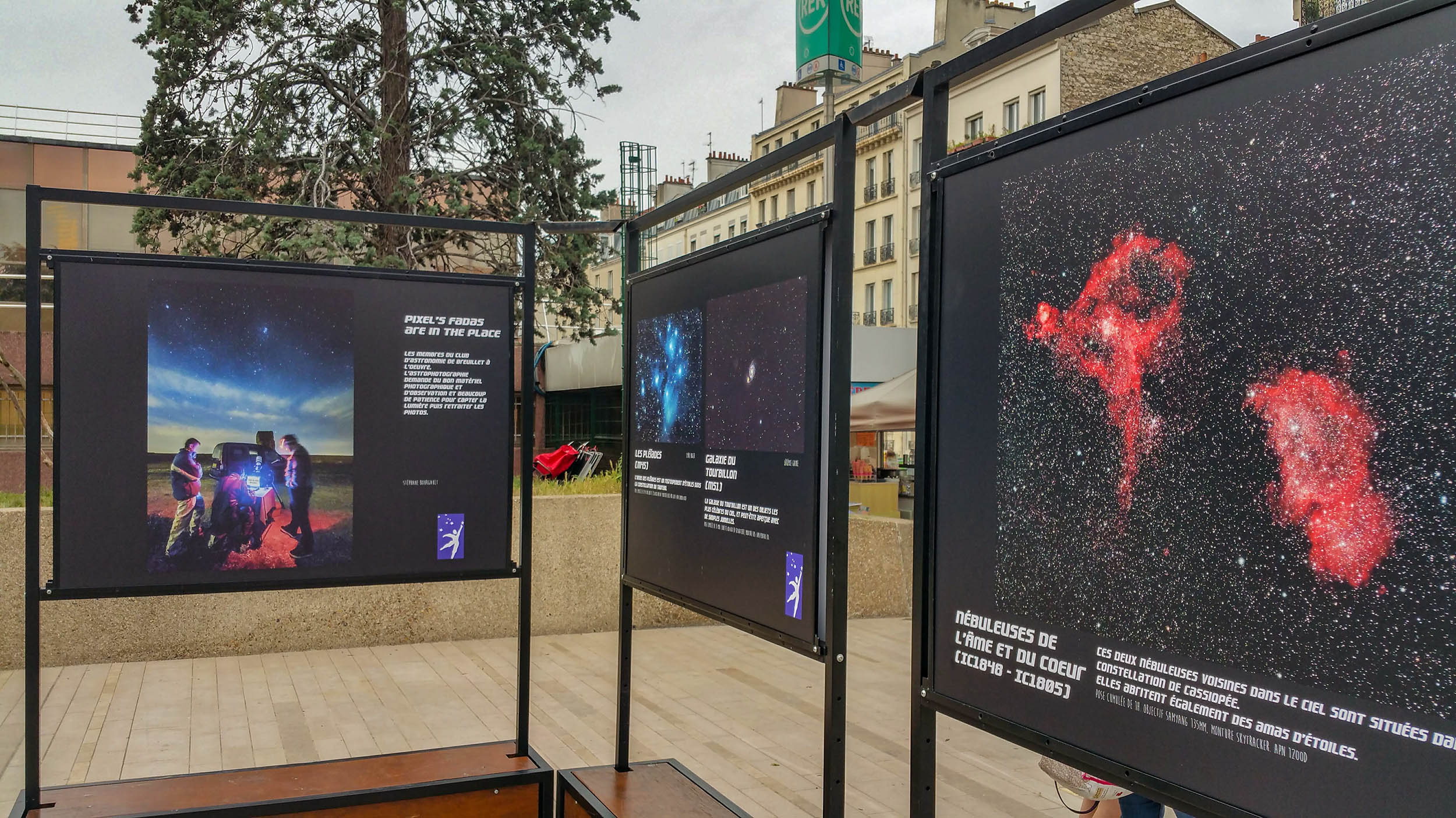 Cette présentation assez modeste n’était rien en comparaison de la véritable Exposition, près de la sortie du métro “Château de Vincennes”, dont ont bénéficié les photos de notre groupe d’astrophotographes les “Fadas du pixel”.