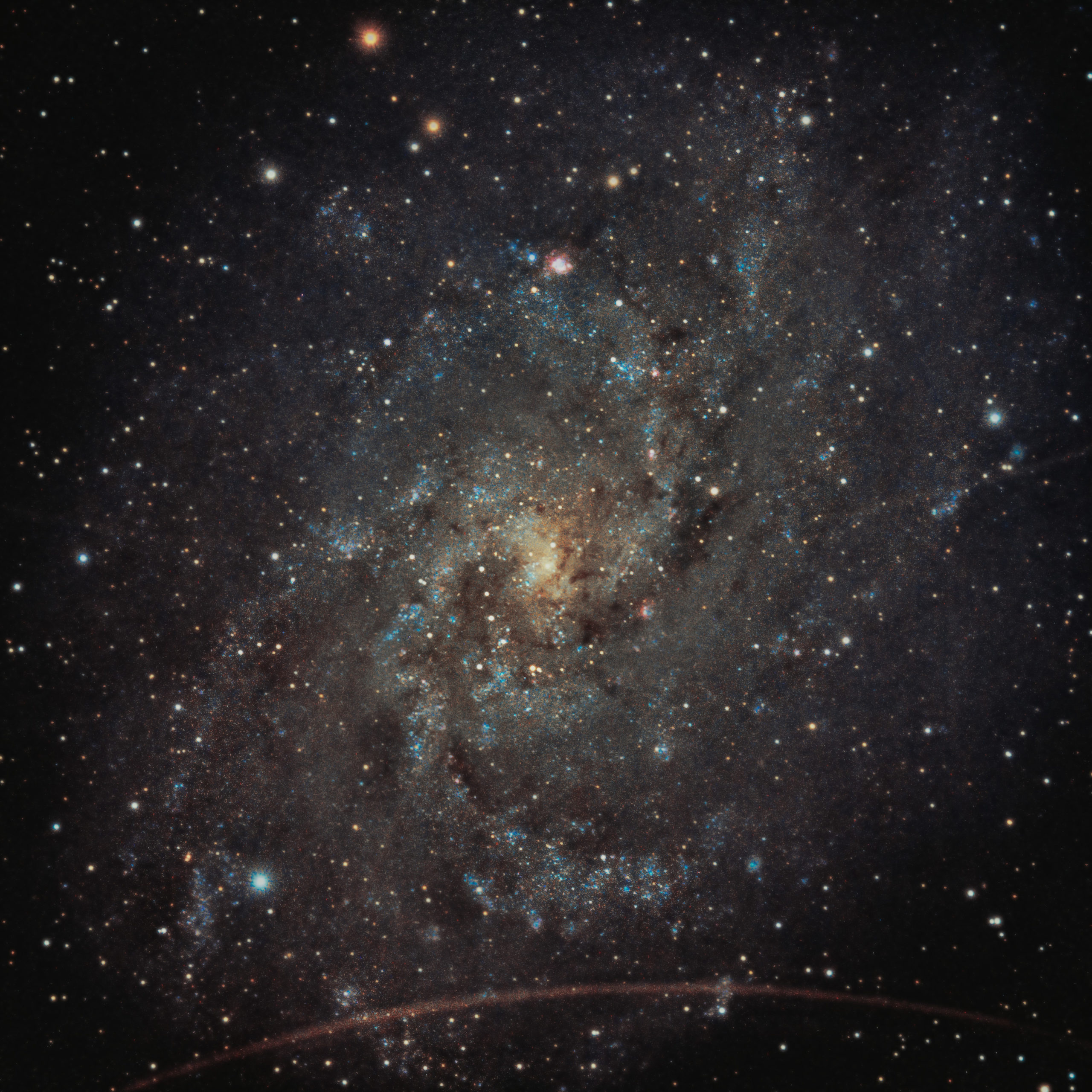 Bien que très grande , la galaxie du Triangle est un peu plus difficile à “imager” car elle est moins lumineuse que la galaxie d’Andromède, sa voisine.