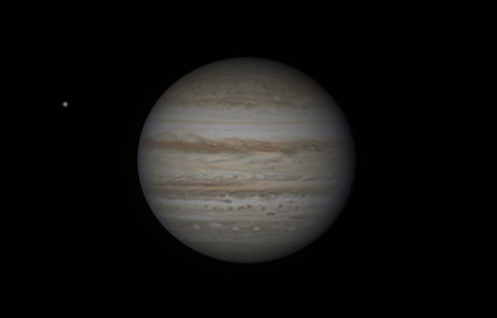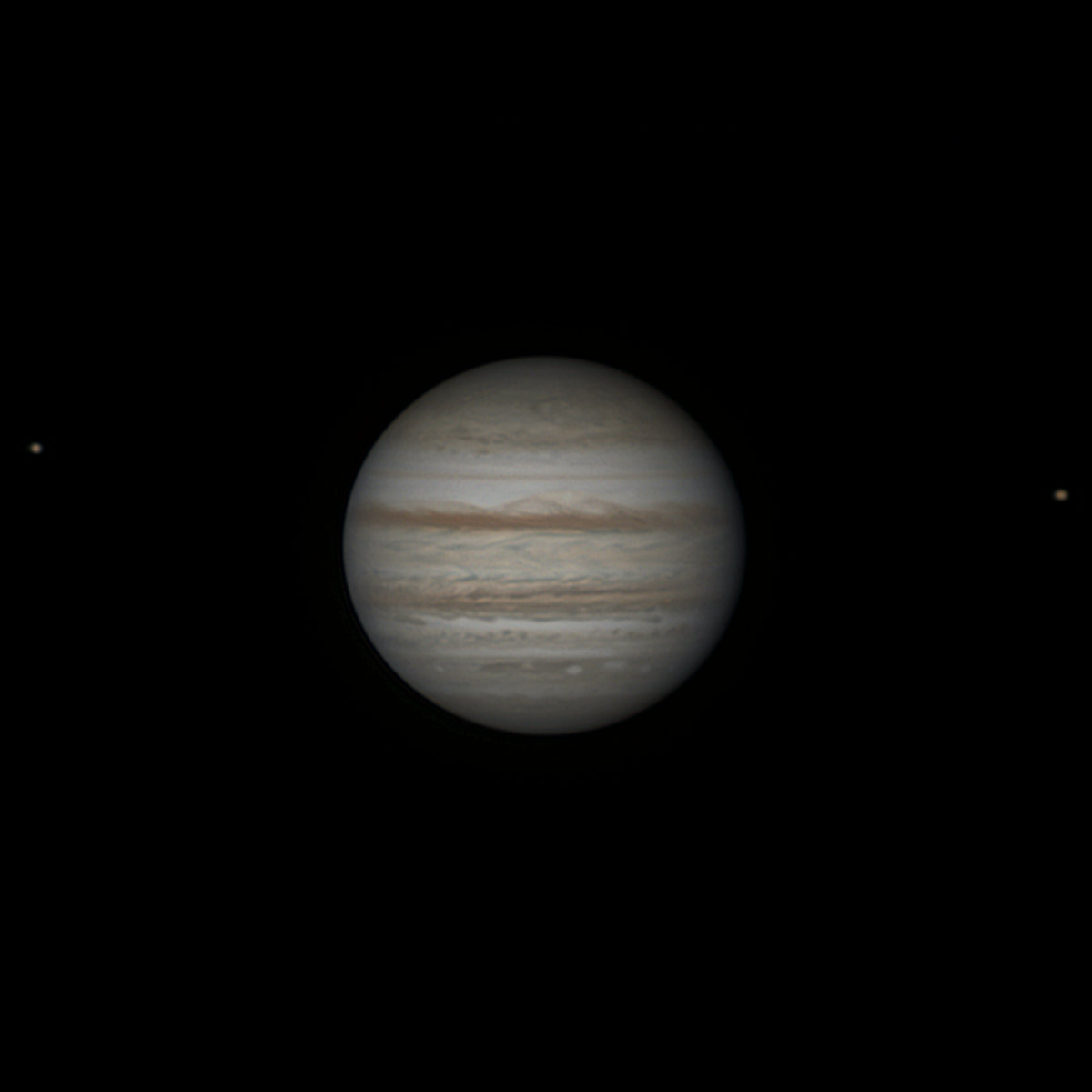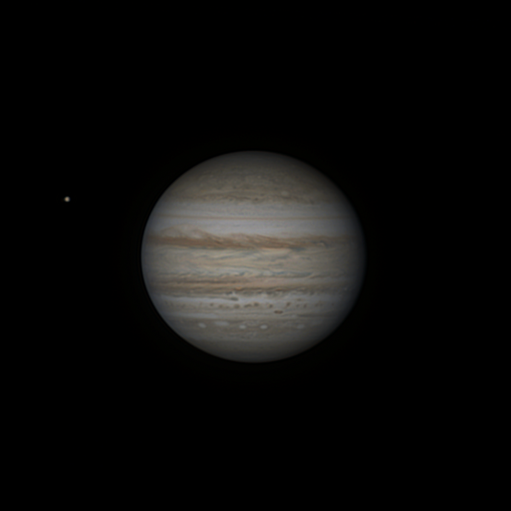 L’image finale est la combinaison de 5 images sous Winjupos. Chaque image est issue d’un film de 90 secondes dont 35% retenues. Traitement avec AutoStakkert , Astrosurface et PSP.