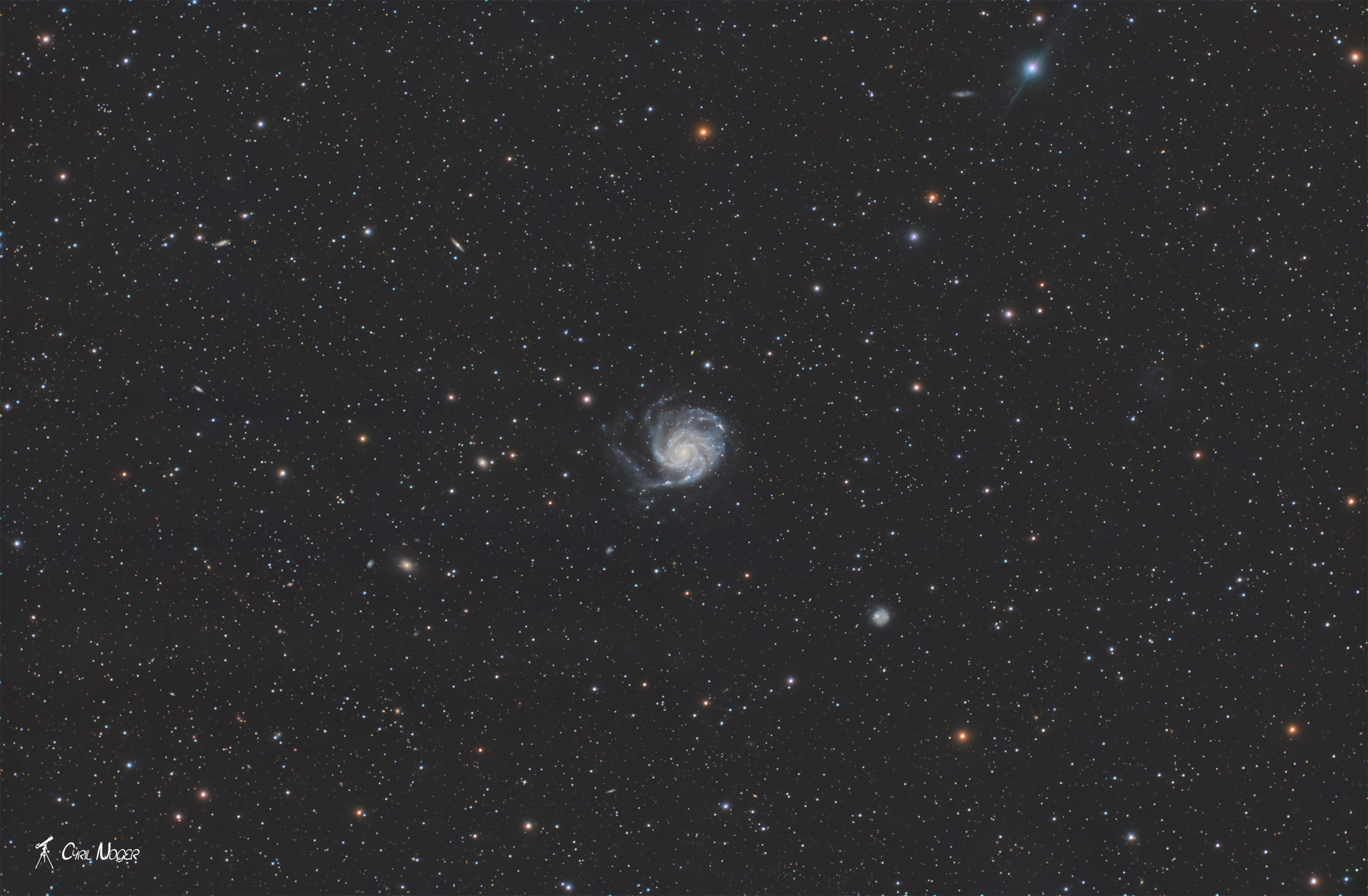 M101 était au zénith et la Lune très gênante (d’où défauts sur l’image que j’ai essayé d’atténuer).