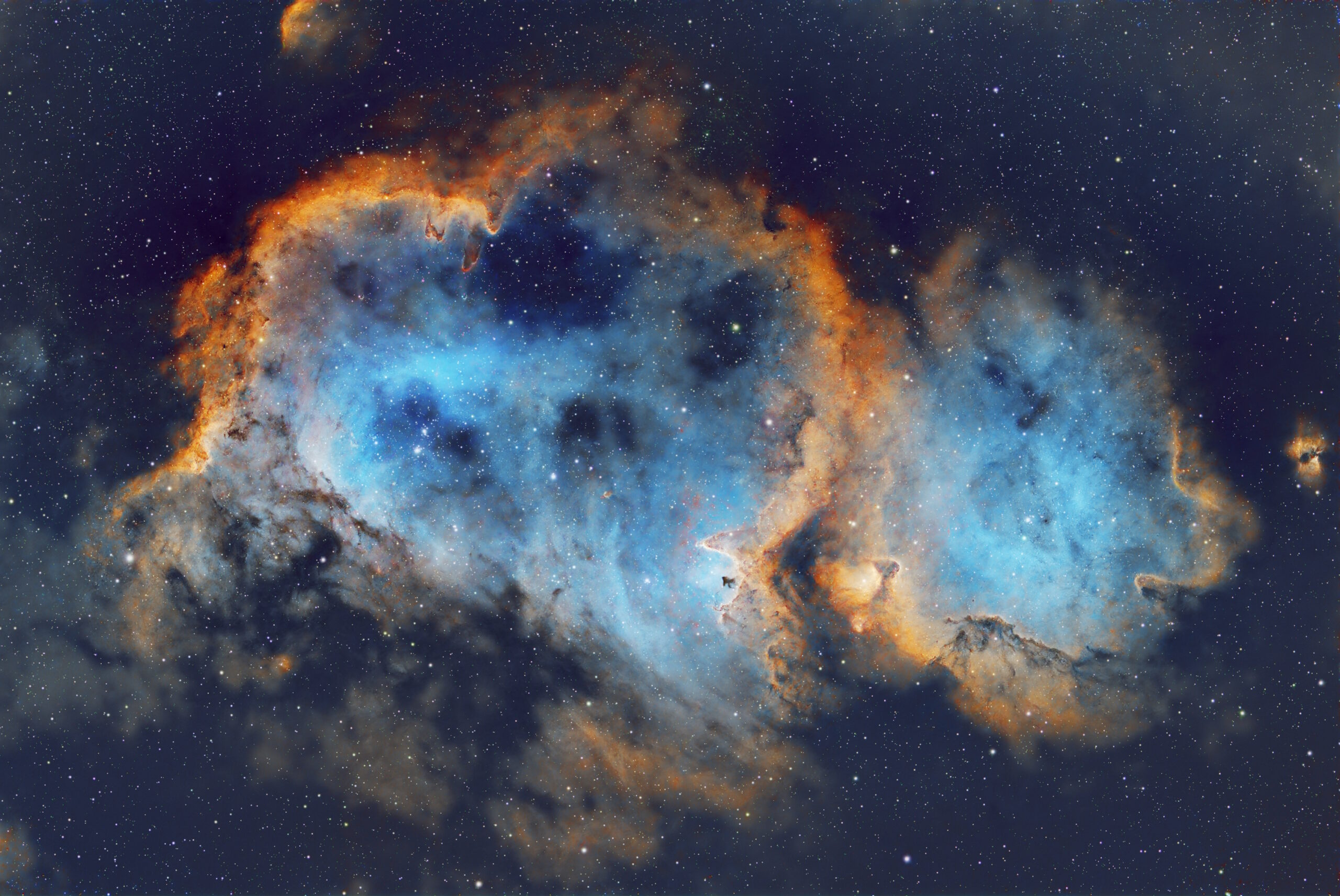 Ici il s’agit d’une image SHO permettant de faire ressortir le soufre, l’hydrogène et l’oxygène. Comme l’hydrogène alpha et le Soufre 2 rayonnent tous les deux dans le rouge, la photo est en fausses couleurs, le soufre dans le rouge, l’hydrogène dans le vert et l’oxygène dans le bleu. Cette palette de couleurs dite SHO a été popularisée par Hubble. Elle permet de révéler des détails qu’il serait difficile de percevoir sans les filtres.