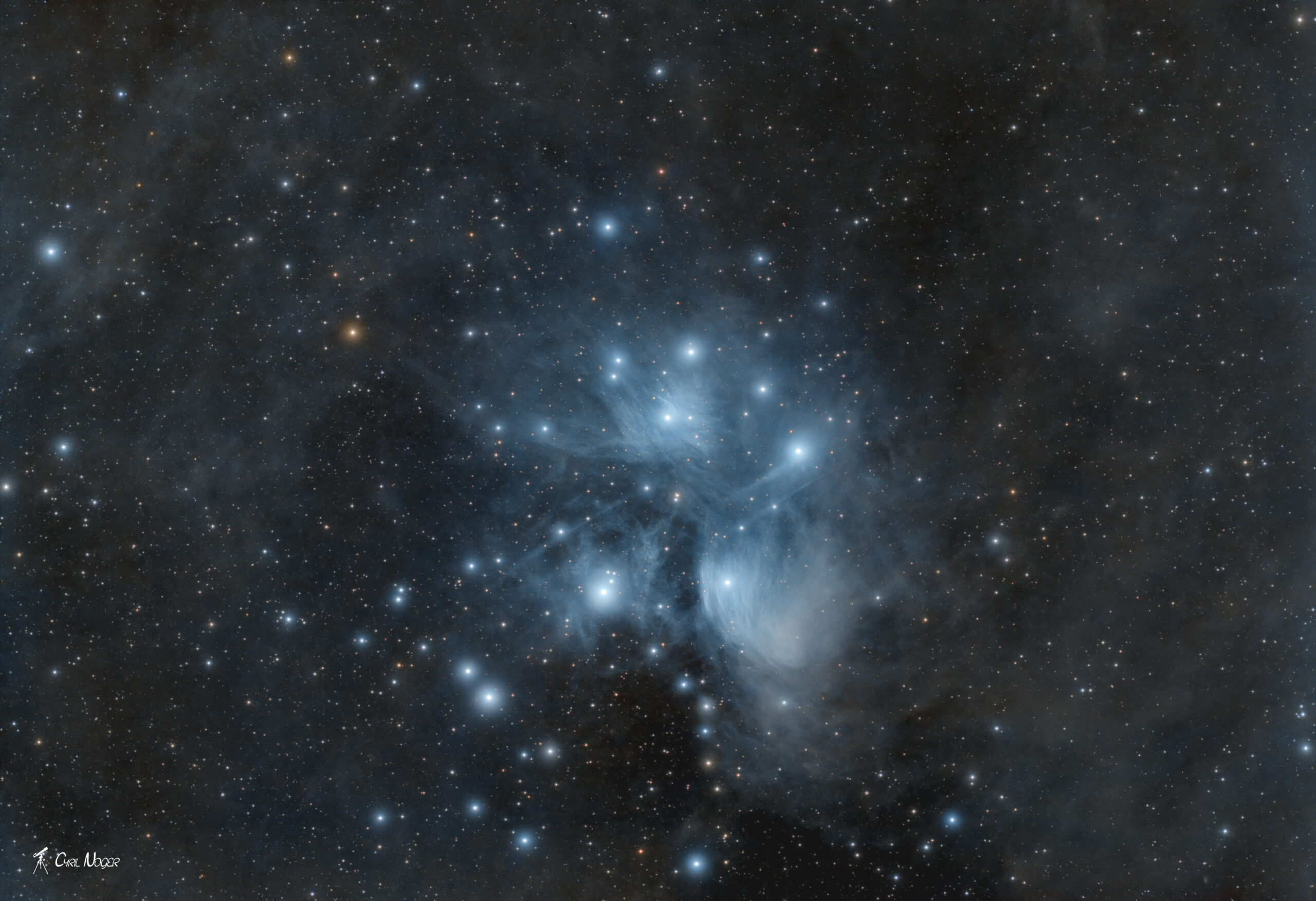 L’amas des Pléiades, les Pléiades ou amas M45, est un amas ouvert d’étoiles qui s’observe depuis les deux hémisphères, dans la constellation du Taureau.
